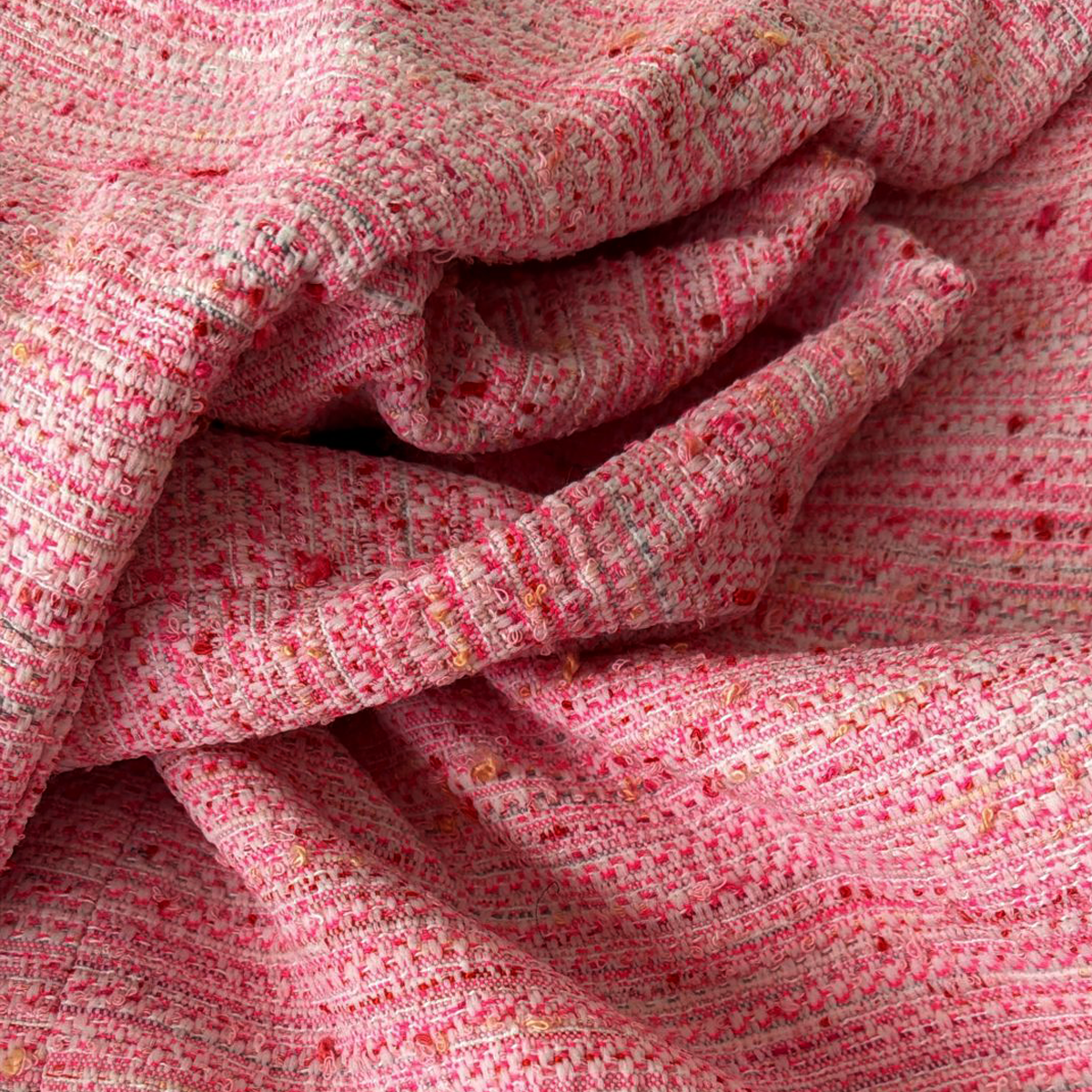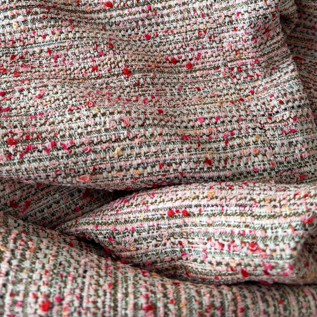 TWEED FABRIQUé en france. Le fil bouclette imprimé utilisé en trame apporte tout son relief et sa texture au produit.